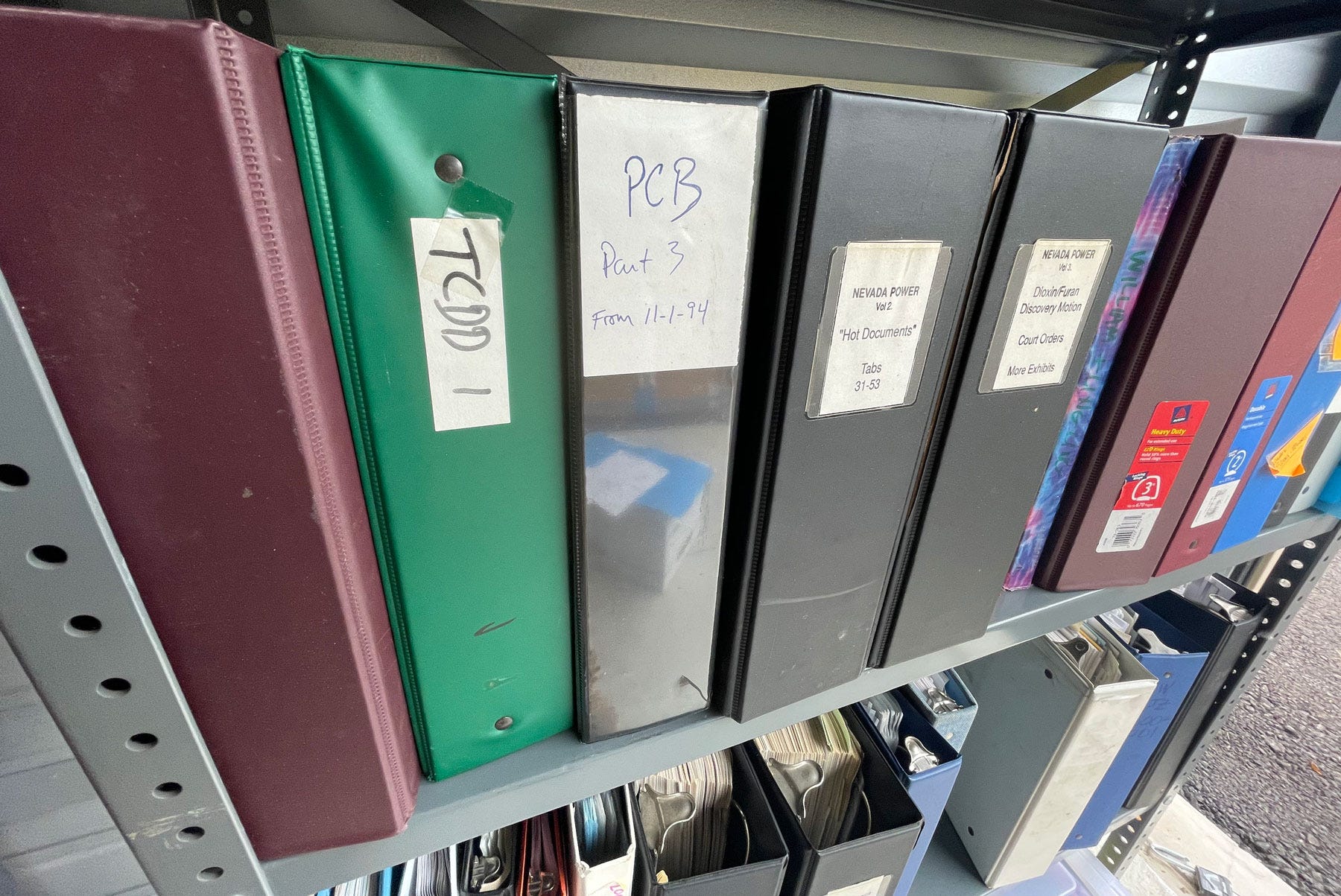 Among the boxes in documents are the trial transcript of the entire Kemner case, which involved a dioxin spill resulting from a train care accident in Missouri about 43 years ago. I’ll share one last photo from the dioxin files — a box containing part of the trial transcript and some of the discovery production.
