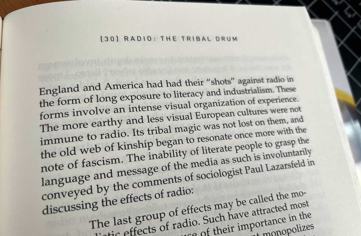 Someone I take solace in reading in these years of digital high tide (and getting higher) is Marshall McLuhan. Speaking of high, he’s like picking up a copy of Be Here Now by Ram Dass and flipping it open when you’re in the middle of an acid trip. You know it will be relevant and reassuring, and if you don’t know, you find out.