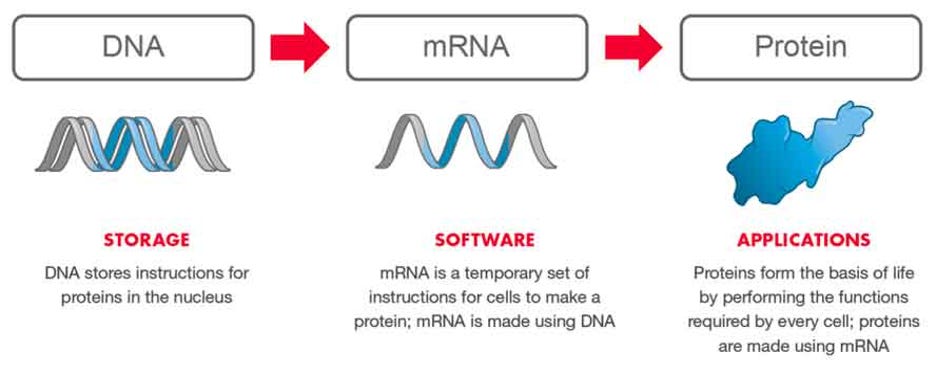 Messenger RNA, or mRNA, is the genetic script that carries DNA instructions to each cell’s protein-making machinery and has been used in the production of coronavirus vaccines.