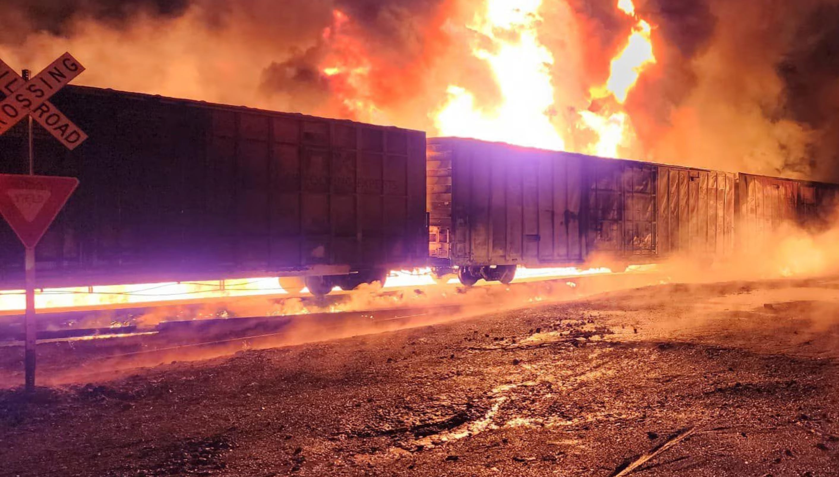 Note, this article contains updated facts, related to the number of cars containing chlorine-based materials. There are a total of nine, and to the best of our knowledge, all of their contents burned.