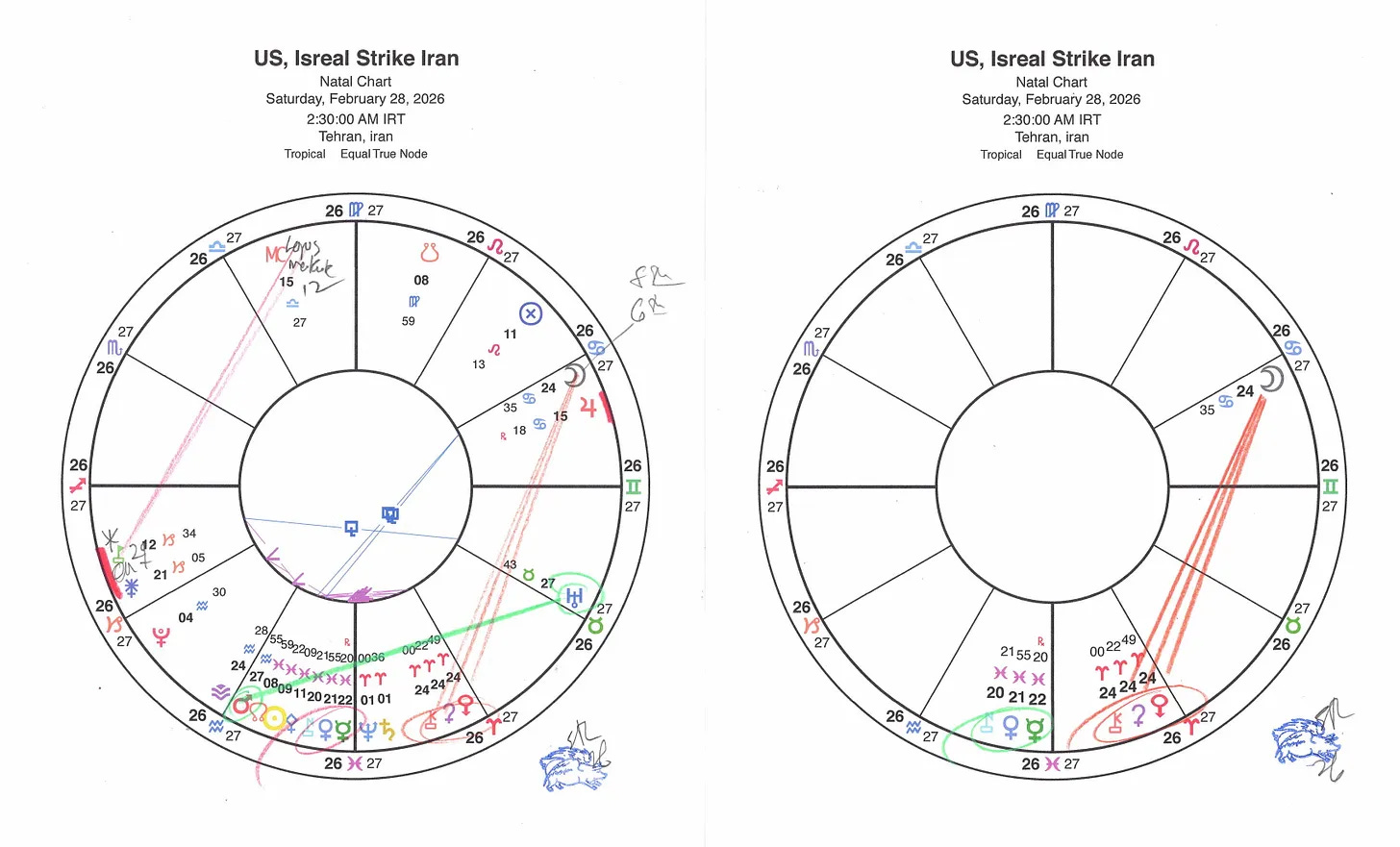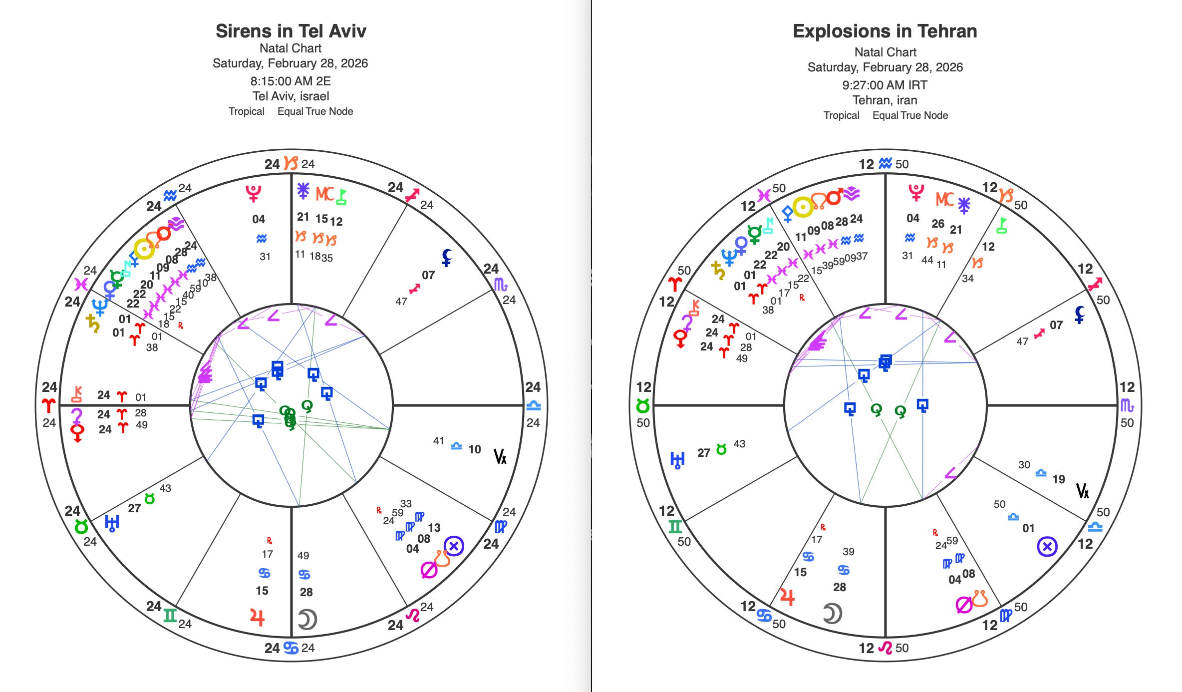 I will do complete readings of the astrology of the commencement of the war in both Tel Aviv and Tehran.