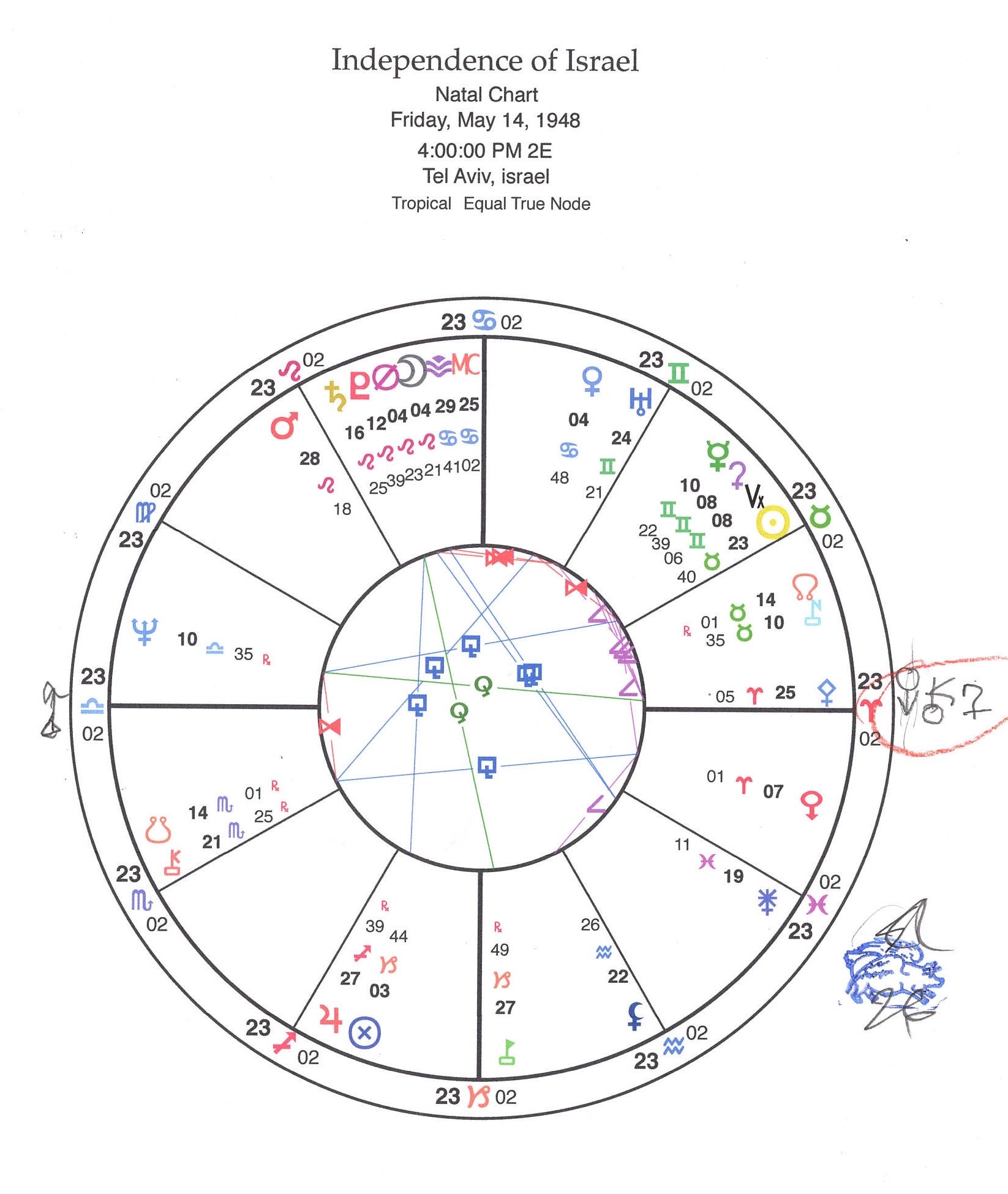 Here is my article on the chart of Israel from when I was writing for Jonathan Cainer