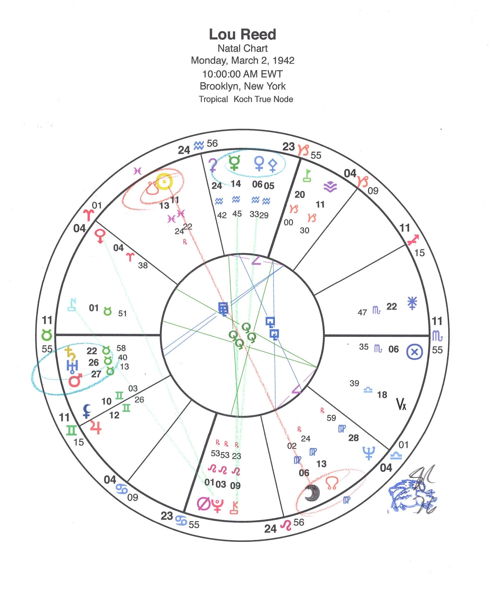 Rob, who I knew as a massage therapist and not a rocker, and as someone who made his own colloidal silver, was a backstage VU regular and got to know Lou and was able to provide Reed’s own interpretation of his natal chart in my 2013 tribute.