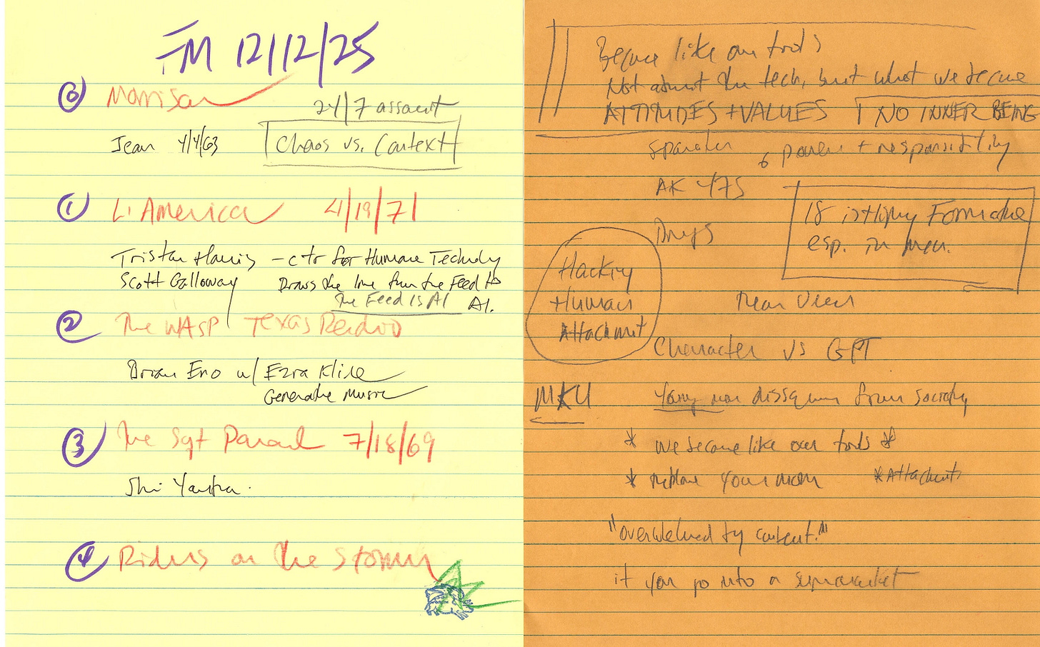 Then, I have part of the conversation between Brian Eno and Ezra Kline that covers the A.I. territory from the angle of creativity and music and the interrelationship between humans and machines. This is one of the best-conducted interviews I’ve ever heard and reveals Kline’s talent once you get him out of a political environment. I could not have done this interview better, no way, no how.
