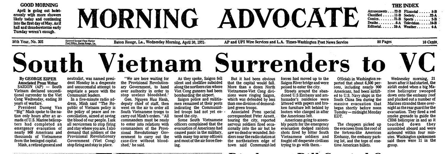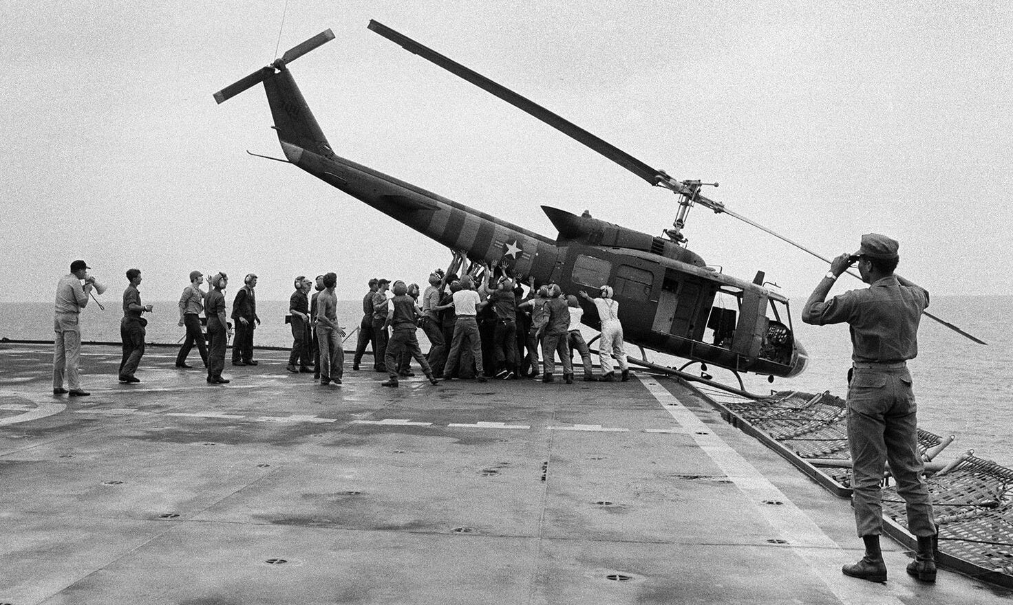 A weeping South Vietnamese mother and her three children are shown on the deck of this amphibious command ship being plucked out of Saigon by U.S. Marine helicopters in Vietnam, April 29, 1975. (AP Photo/J.T. Wolkerstorfer)
