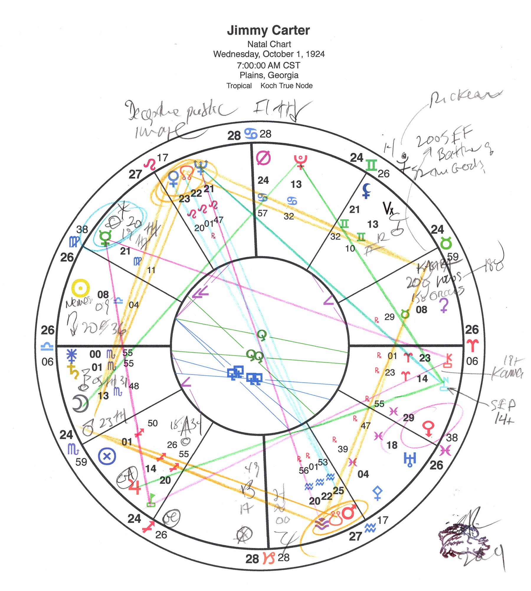 I think I forgot one thing. Anyway…here is Carter’s chart, which I do not read; perhaps another time. To do this segment, I checked Carter and his progressions; Adm. Rickover; the summer of ‘73 when the Trilateral Commission was formed; the Carter inauguration in ‘77; and a few others. But — I don’t mention the astrology.